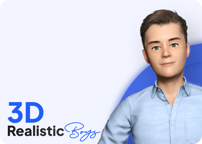 This library is organized into categories such as 2D, 3D, realistic, cartoon, girl and boy.